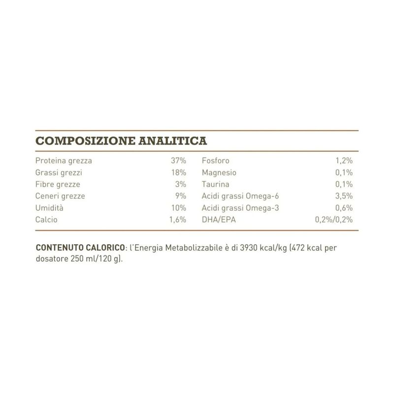 • Ricco di pregiata carne di prima qualità, tra cui carni bianche di pollo e tacchino, uova e pesce d’acqua dolce.