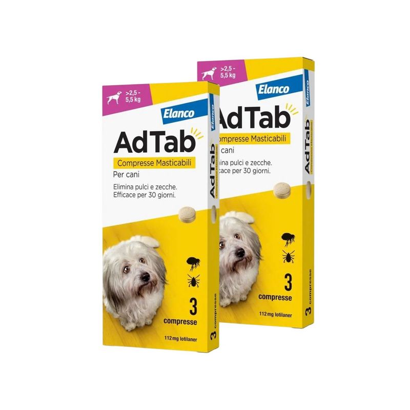 CaneAntiparassitari e CurativiAntiparassitariCompresseAdTab Compresse Masticabili Cane 2,5-5,5kg 112 MG
