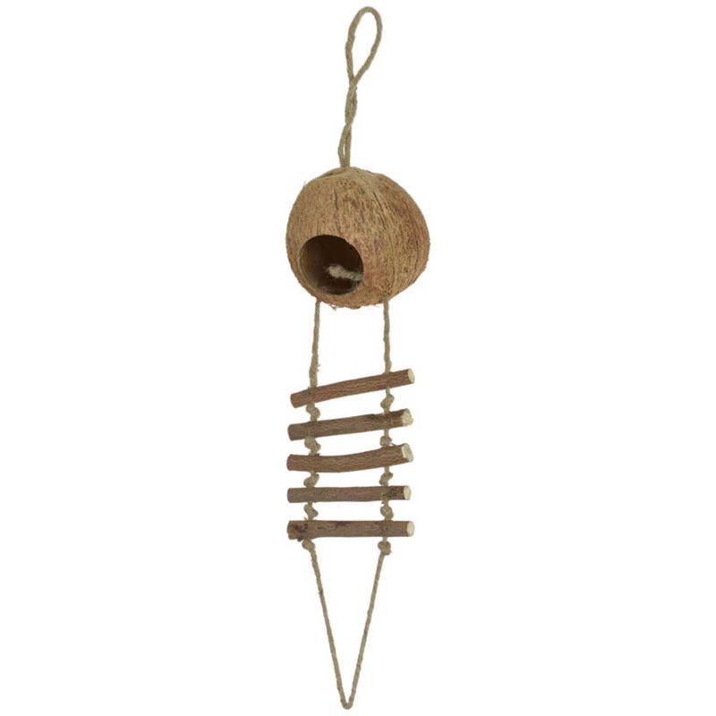 Il design intelligente della casetta include una scaletta integrata che aggiunge un elemento di gioco e attività, consentendo ai piccoli roditori di arrampicarsi e esplorare. Il passante integrato facilita l'installazione della casetta con scala all'interno della gabbia, offrendo un angolo dedicato per il divertimento. La Casa di Cocco non è solo un nascondiglio, ma anche un punto focalizzante per il gioco. I materiali naturali utilizzati, inclusi il cocco per la casetta e i pioli della scala, sono sicuri per i tuoi animali da compagnia. La possibilità per i roditori di mordicchiare la casa e la scala favorisce l'importante processo di abrasione dei denti, contribuendo alla loro salute dentale.