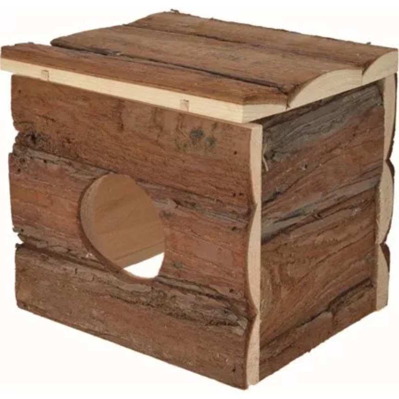 La AniOne Casetta per Roditori Till in legno 100% naturale è un rifugio accogliente e funzionale, perfetto per criceti e topi. Realizzata in legno naturale proveniente da silvicoltura sostenibile, questa casetta non è solo un nascondiglio sicuro e un luogo di riposo, ma stimola anche il naturale bisogno di masticare dei roditori, fondamentale per mantenere i loro denti in salute. La casetta ha un unico ingresso che garantisce un interno piacevolmente buio, mentre il tetto apribile consente di osservare facilmente il piccolo mammifero e offre una superficie di appoggio dove il roditore può rilassarsi e guardarsi intorno.