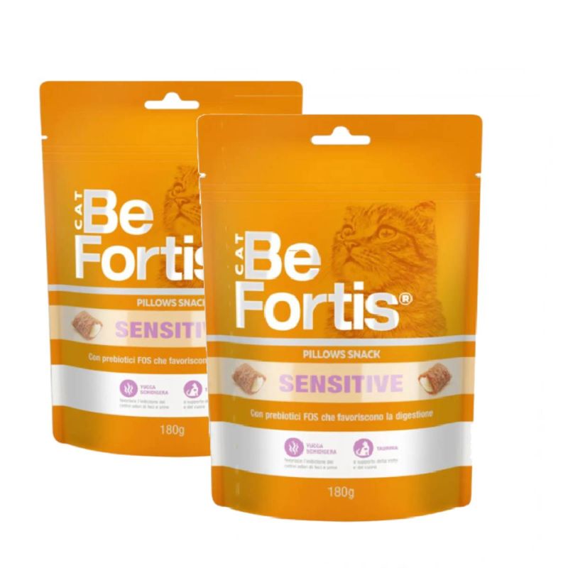 Fai felice il tuo micio e migliora la sua digestione con BeFortis Cat Pillows Snack Sensitive! Un gustoso premio che supporta il suo benessere!
