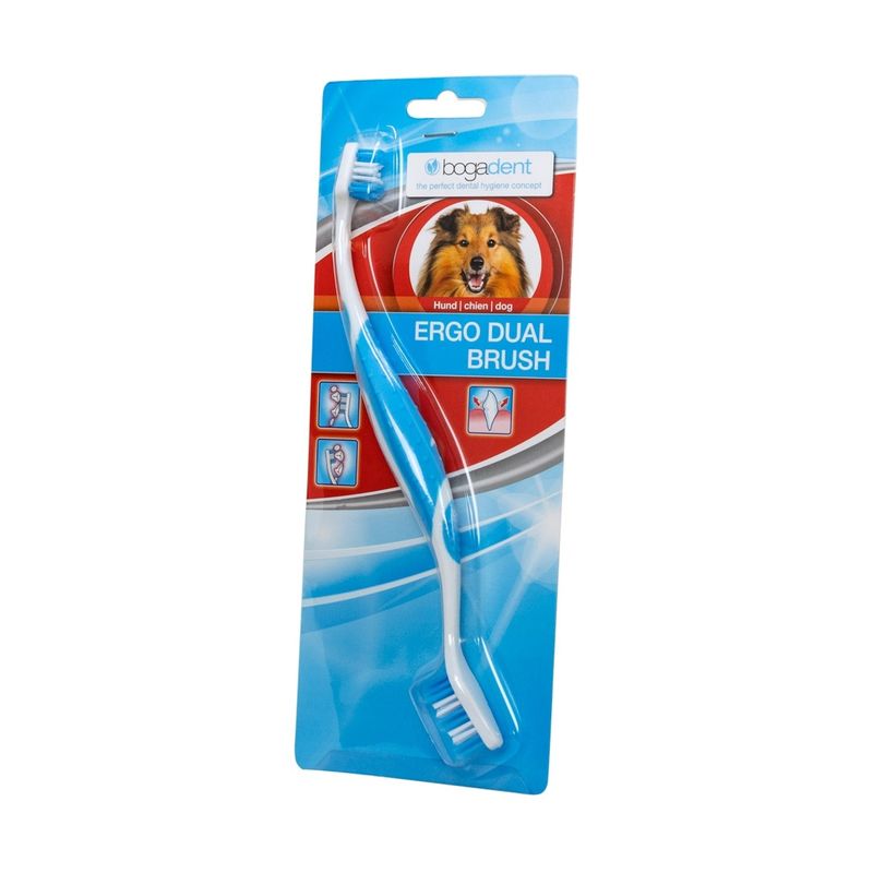 Dì addio a placca e tartaro con un solo gesto! Prova subito il Bogadent Dog Spazzolino Ergo Dual Brush e fai splendere il sorriso del tuo amico a quattro zampe!