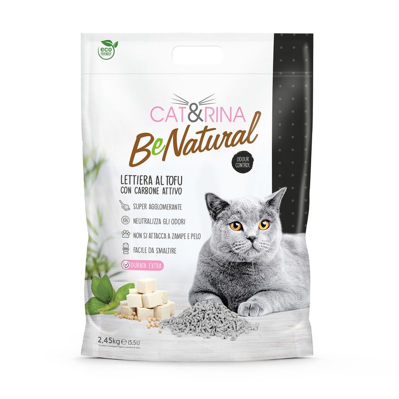 Acquista ora la Cat&Rina Benatural Lettiera per Gatti al Tofu Carboni Attivi, di origine vegetale, lettiera agglomerante con carboni attivi perfetta per tutti i gatti.