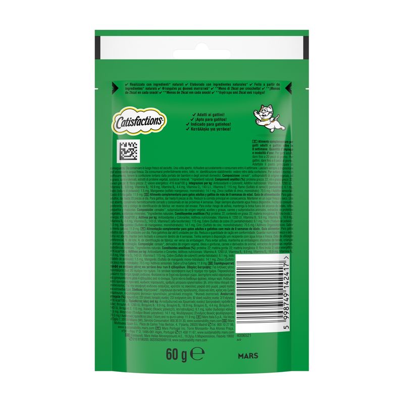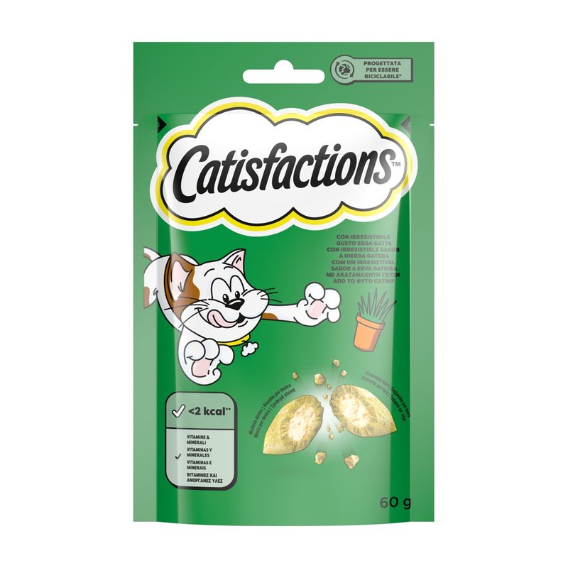Rendi ogni giorno speciale con il Catisfaction Snack Gatto Erba Gatta, il momento più atteso della giornata dal tuo micio è a portata di zampa!