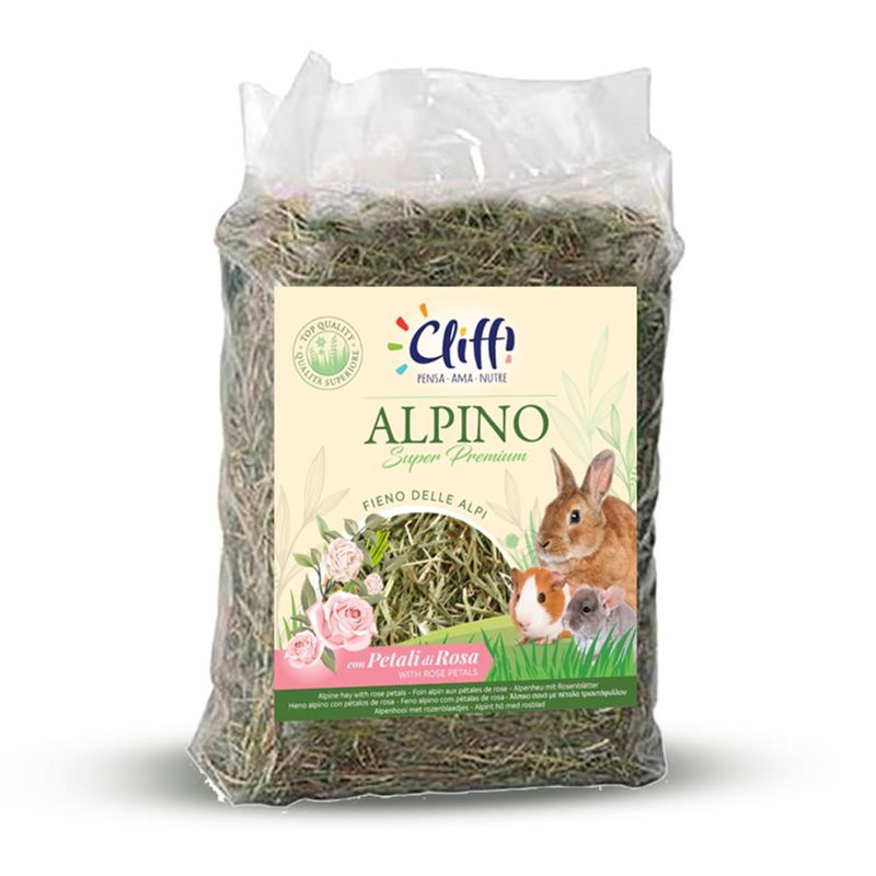 Dai al tuo piccolo amico un tocco di natura con il Cliffi Fieno per Roditori Alpino Super Premium con Petali di Rosa: un’esperienza profumata e benefica che amerà!