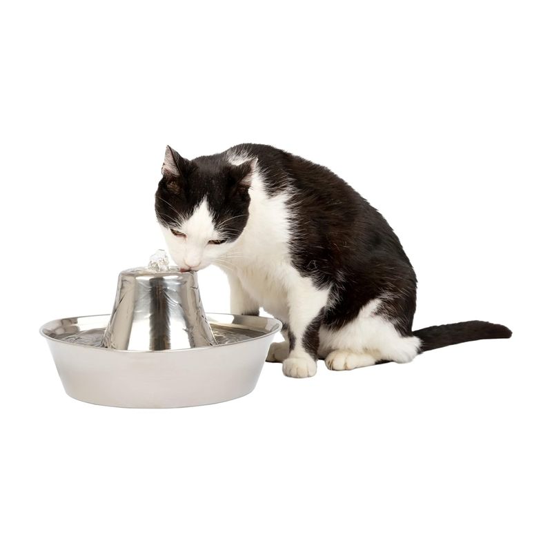 La Petsafe Fontana Seaside per Cani e Gatti è una fontanella compatta ed elegante in acciaio inox, pensata per garantire una corretta idratazione ai gatti e cani di piccola taglia. La sua struttura in metallo spazzolato è non solo resistente ai graffi e alla ruggine, ma anche facile da pulire e priva di BPA. Il design a 360 gradi permette all’animale di bere comodamente da qualsiasi lato, sia dalla base che dal getto d'acqua centrale, che produce un flusso dolce e silenzioso, ideale anche per i pet più timidi. La circolazione continua dell'acqua aiuta a prevenire la proliferazione batterica, mentre i filtri a carbone attivo e in schiuma rimuovono odori sgradevoli e impurità, garantendo sempre acqua fresca e pulita. Con una capacità di 1,8 litri, è perfetta per l’uso quotidiano, anche in ambienti condivisi. Tutti i componenti, tranne la pompa, sono lavabili in lavastoviglie, rendendo la manutenzione semplice e veloce.