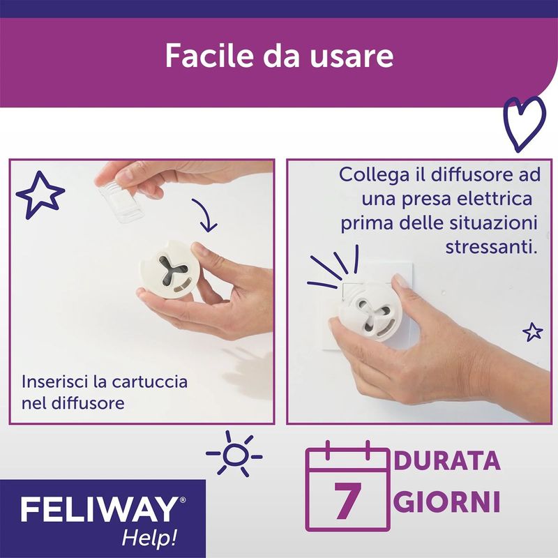 Feliway Help Diffusore e Ricarica 7 Giorni, progettato per agire rapidamente e garantire benessere continuo per