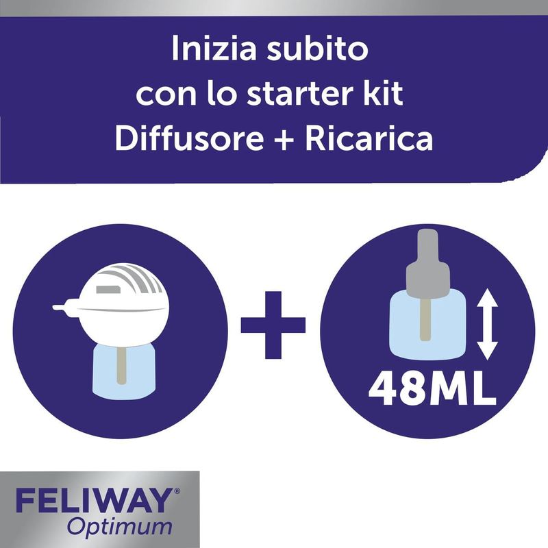 STARTER KITCreare un ambiente sereno per il tuo gatto non è mai stato così semplice grazie a Feliway Optimum Diffusore e Ricarica 48ML. Questo innovativo alleato del benessere felino utilizza un nuovo complesso di Feromoni Felini studiato per inviare messaggi rassicuranti e aiutare il tuo micio a sentirsi sempre tranquillo e al sicuro in casa. Che si tratti di stress, cambiamenti nell’ambiente o comportamenti indesiderati come graffiature, marcature urinarie o tensioni tra gatti, Feliway Optimum è la soluzione perfetta per ritrovare l’armonia domestica.