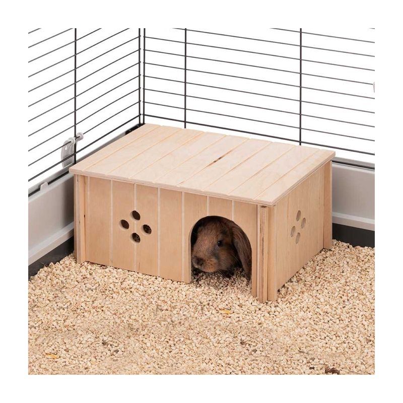 1 PZLa Ferplast Casetta Large è la soluzione ideale per offrire un ambiente sicuro e confortevole a conigli nani, cavie e cincillà. Realizzata in legno certificato FSC, proveniente da foreste gestite in maniera ecosostenibile, questa casetta garantisce il benessere dei tuoi piccoli amici nel pieno rispetto dell'ambiente. L'ampio spazio interno offre un rifugio sicuro, mentre l'ingresso laterale e il tetto piano permettono un facile accesso. La casetta è dotata di fori sulla struttura per assicurare un ottimo ricambio dell'aria, mantenendo l'ambiente sempre fresco e ventilato. Semplice da assemblare, la casetta viene fornita con un pratico kit di montaggio che ne facilita l'installazione. Con dimensioni complessive di 33x23,6xh16CM, si adatta perfettamente a gabbie e spazi dedicati agli animali domestici.