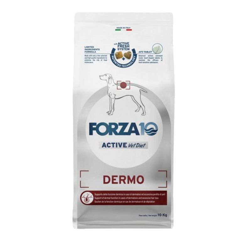 Scegli Forza10 Dog Active Vet Diet Dermo per supportare la salute della pelle e del pelo del tuo cane, garantendo una nutrizione di alta qualità con ingredienti selezionati e benefici naturali.