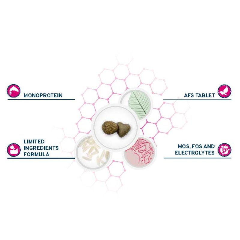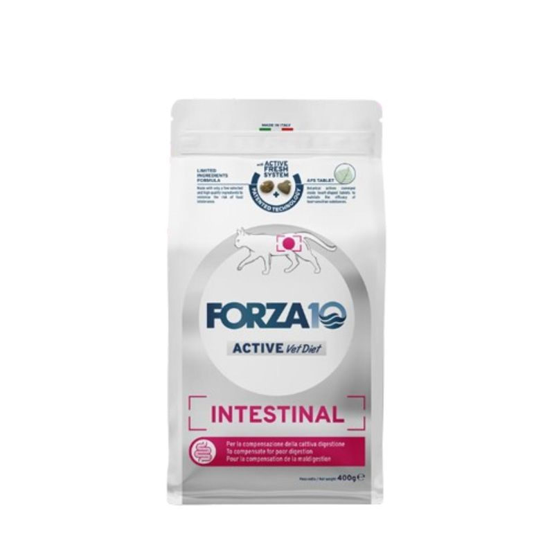 Forza10 Cat Active Vet Diet Intestinal con Pesce è un alimento secco dietetico completo, appositamente formulato per gatti adulti con problemi di cattiva digestione. Questa nutrizione avanzata utilizza una sola fonte di proteine animali, esclusivamente proveniente dal pesce, che garantisce un elevato valore biologico e una biodisponibilità superiore, assicurando una qualità nutrizionale eccezionale. Il prodotto è realizzato con pochi ingredienti selezionati e di alta qualità, riducendo al minimo il rischio di intolleranze alimentari e reazioni avverse. La scelta meticolosa degli ingredienti contribuisce a un'alimentazione equilibrata, facilmente tollerata e perfetta per gatti con difficoltà digestive. La formula di questo prodotto include l’AFS Tablet, una combinazione di ingredienti specifici progettati per supportare la salute intestinale. Tra questi, lo Psyllium, con le sue mucillagini, offre un'azione protettiva e favorisce la normalizzazione della peristalsi intestinale. Questo aiuta a mantenere un transito intestinale regolare e a prevenire disturbi digestivi. Inoltre, il complesso di fermenti lattici (Enterococcus Faecium) contenuto nel prodotto contribuisce al ripristino della normale flora batterica intestinale. Questo supporta una digestione sana e un equilibrio ottimale del microbiota intestinale, migliorando ulteriormente la salute digestiva del tuo gatto. Questo prodotto è arricchito con una combinazione unica di prebiotici e elettroliti, inclusi MOS e FOS, che favoriscono il ripristino della normale funzionalità intestinale e contribuiscono al benessere del microbiota intestinale. Il prodotto è formulato con un rapporto ottimale di Omega-3 e Omega-6 provenienti dall’olio di pesce, bilanciato in modo preciso per supportare la naturale barriera protettiva della cute. Questo equilibrio ideale di acidi grassi essenziali aiuta a mantenere la pelle sana e il pelo lucido, promuovendo una protezione ottimale contro le irritazioni e sostenendo il benessere cutaneo complessivo.