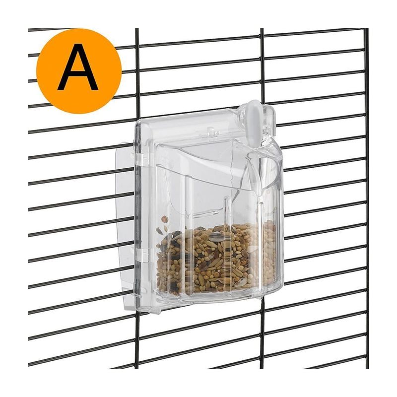 • Mangiatoie: Realizzate in plastica trasparente robusta, sono girevoli di 180 gradi per un facile riempimento dall'esterno.