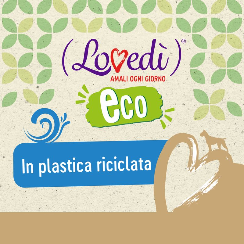 La Lovedì Eco è la nuova proposta di giochi ecologici per cani e gatti, pensata per i clienti che apprezzano prodotti sostenibili senza rinunciare a qualità e divertimento. Ogni articolo di questa gamma è realizzato con materiali riciclati o naturali, con l’obiettivo di ridurre l’impatto ambientale e promuovere un approccio più responsabile nei confronti del pianeta. Il packaging è stato studiato per rispecchiare l’impegno verso la sostenibilità: ogni confezione è ottimizzata in termini di dimensioni e materiali, riducendo sprechi e migliorando la logistica, per un’impronta ecologica complessiva più leggera. La grafica naturale e armoniosa richiama immediatamente il legame con l’ambiente, e le icone informative presenti spiegano chiaramente la componente sostenibile di ciascun prodotto, come l'uso di materiali riciclati o alternativi naturali.
