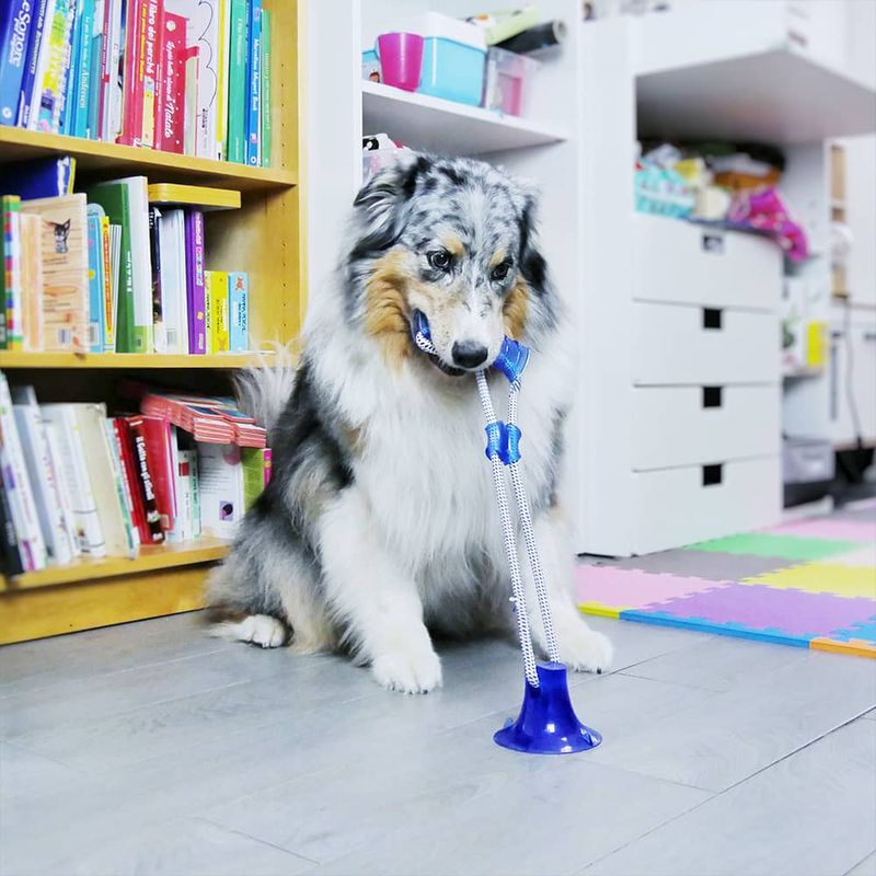 Pull&play è il gioco ideale per stimolare ed intrattenere il cane riducendo il suo stress. Il prodotto può essere posizionato su qualsiasi superficie liscia: sul tavolo, sul pavimento, o sulle piastrelle del bagno. In questo modo potrai intrattenere il tuo fedele amico a quattro zampe mentre si lava; la ventosa tiene il gioco fermo e consente al cane di tirare senza perdere la presa. Pull&play è utile anche per la sua pulizia dentale. Per ottenere una maggiore aderenza, bagnare il fondo della ventosa. Misure del prodotto: 36×13 cm.