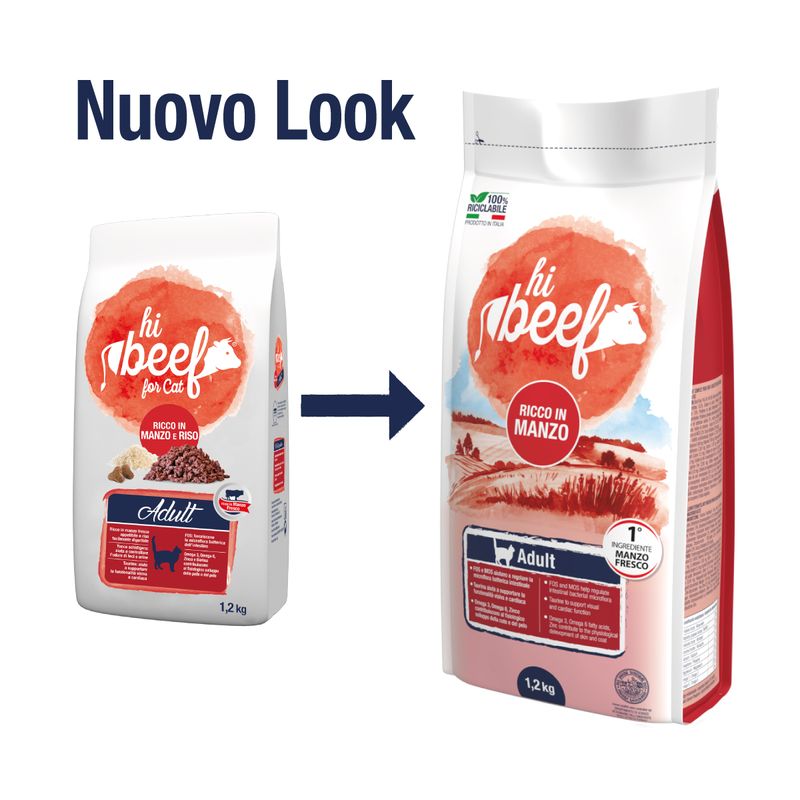 Attenzione: Hi Beef Cat Adult Manzo e Riso si rinnova con nuovo pack e nuova formulazione. Potresti ricevere il nuovo o il vecchio pack a seconda delle disponibilià a magazzino.