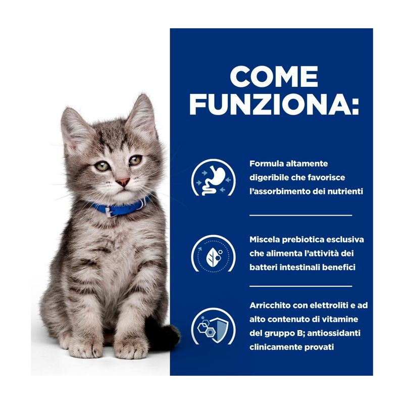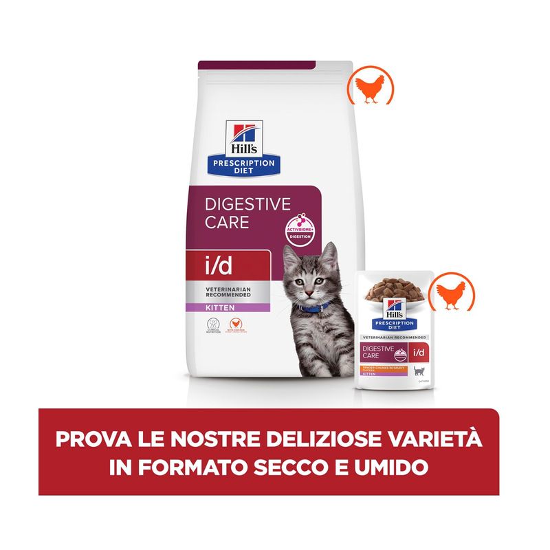 Aiuta il tuo cucciolo a crescere sereno e in forma con Hill’s Prescription Diet i/d Digestive Care Alimento Secco per Gattini con Pollo… perché una buona digestione è il primo passo verso una vita da leoni!