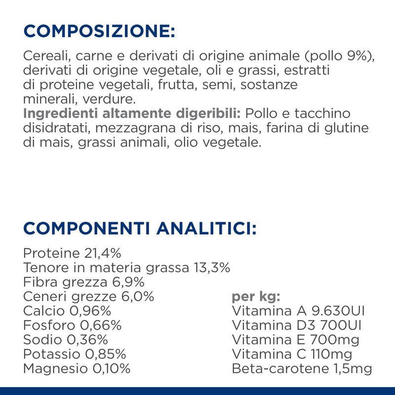 • Contiene il pollo come fonte di proteina animale di alta qualità.