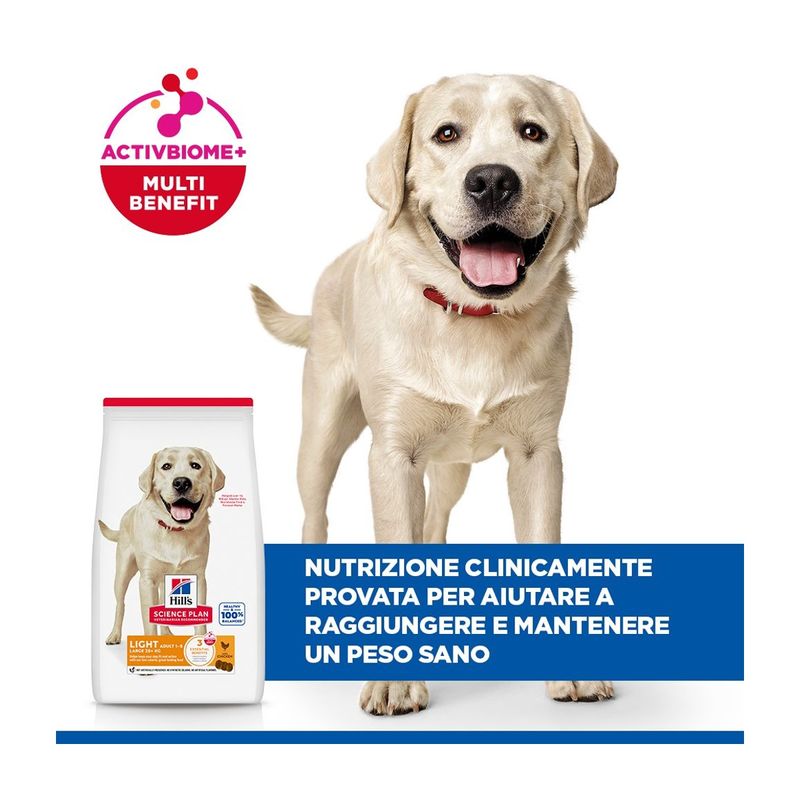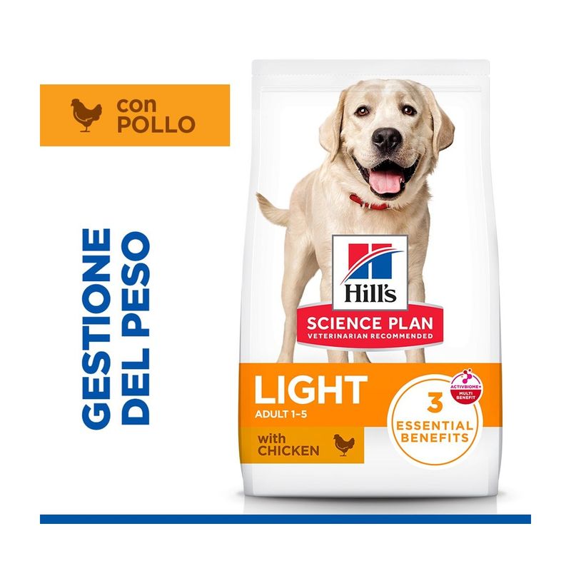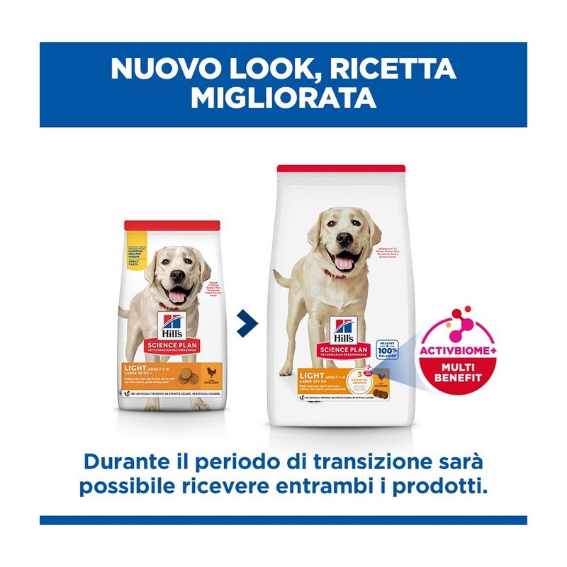 Hill's Science Plan Dog Light Large Breed Adult al Pollo si rinnova con nuovo pack e nuova formulazione. Potresti ricevere il nuovo o il vecchio pack in base alle disponibilità a magazzino.