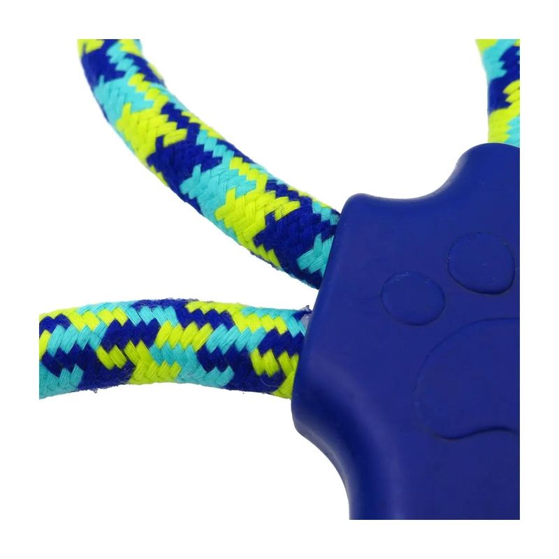 Il Kit Giochi Natalizi per Cane Corda con Anelli e Osso è un set robusto e stimolante, pensato per cani di taglia media e grande che amano tirare, mordere e giocare con energia. Il primo gioco presenta una struttura a quattro anelli in corda intrecciata, collegati da un centro in gomma resistente, perfetto per il tiro alla fune, il lancio e il gioco autonomo. La presa comoda e la forma ergonomica lo rendono ideale per l’interazione con il proprietario o con altri cani. Il secondo gioco abbina una corda multicolore ultra resistente a un osso centrale in gomma blu con texture massaggiante, progettato per stimolare il morso e aiutare a mantenere una buona igiene orale. Entrambi i giochi supportano il rafforzamento della muscolatura, stimolano l’attività fisica e aiutano a pulire denti e gengive in modo naturale, durante il gioco.