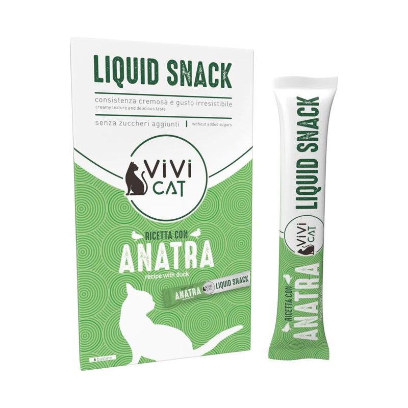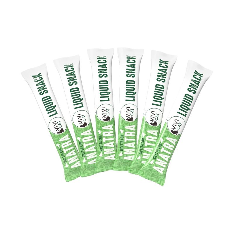 Coccola il tuo gatto con gusto e leggerezza: scegli ora Kit Risparmio 18x15G ViVi Cat Liquid Snack all' Anatra e rendi ogni giorno più speciale con un momento tutto per lui!