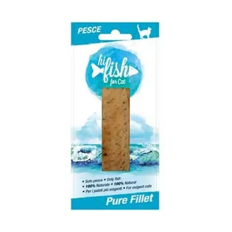 Kit Risparmio 15x15G Hi Fish Snack Cat Pure Fillet è un delizioso e nutriente fuori pasto da poter offrire al tuo micio ogni qualvolta che ne ritieni necessario. Questo gustoso filetto per gatti è preparato con carne di solo pesce, 100% naturale, senza l’aggiunta di zuccheri, coloranti ed aromi artificiali. La ricetta è povera di grassi ad alto contenuto di proteine e senza aggiunta di zucchero, soia, frumento, uova, latticini e farine di carne, ricetta povera di grassi e con alto contenuto di proteine ideale per il tuo micio. Preparati con ingredienti di altissima qualità e naturali, ad alto contenuto di proteine animali. Formulato con sola carne d'pesce bollita e messa in sottovuoto. Il gustoso filetto per gatti è gradito anche dai palati più fini.
