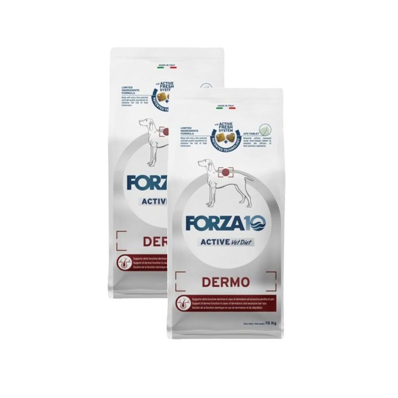 Opta per il Kit Risparmio 2x10KG Forza10 Dog Active Diet Dermo per offrire al tuo cane una nutrizione di alta qualità, ideale per la salute della pelle e del pelo, risparmiando con una conveniente offerta doppia.