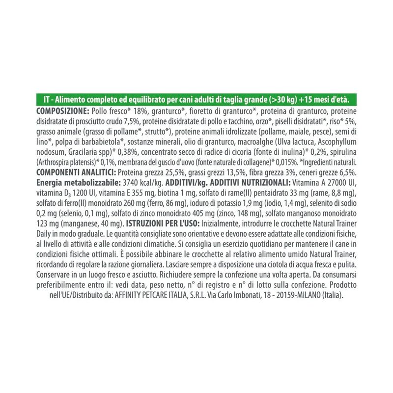 Natural Trainer Adult Maxi Prosciutto Crudo si rinnova con nuovo pack e nuova formulazione. Potresti ricevere il nuovo o il vecchio pack in base alle disponibilità in magazzino.