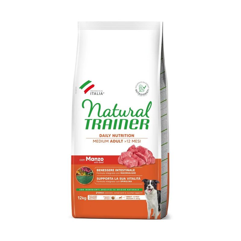 Natural Trainer Adult Medium con Manzo si rinnova con nuovo pack e nuova formulazione. Potresti ricevere il nuovo o il vecchio pack in base alle disponibilità in magazzino.
