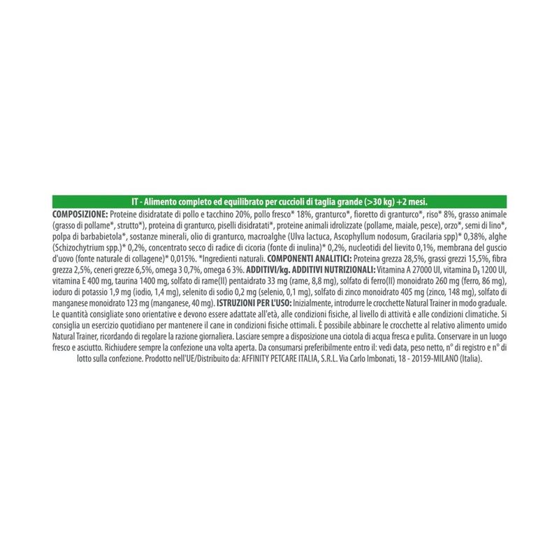 POLLO FRESCOSe sei alla ricerca di un alimento secco sano e irresistibile per il tuo amico a quattro zampe, il Kit Risparmio 2x12KG Natural Trainer Puppy Maxi Pollo rappresenta la scelta perfetta. Questo prodotto combina qualità eccellente e convenienza, offrendo un’alimentazione mirata che soddisfa le esigenze nutrizionali del tuo cane, senza compromessi. Inoltre, il formato risparmio non solo ti consente di avere sempre a disposizione una scorta di bontà per il tuo cane, ma è anche una scelta economica intelligente.