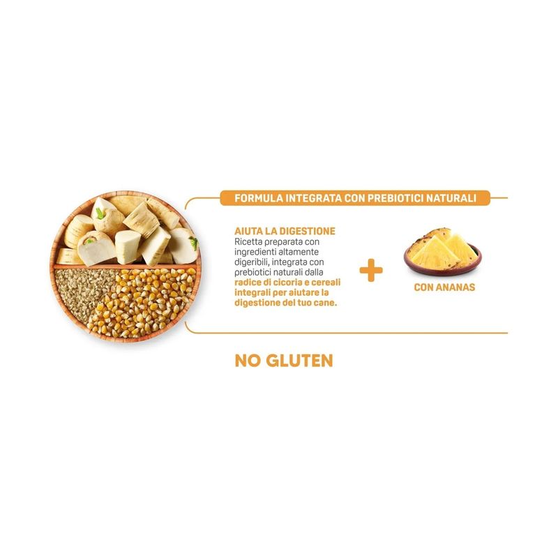 • Con estratto di ananas 100% naturale, cereali integrali, prebiotici, semi di lino e Boswellia serrata.