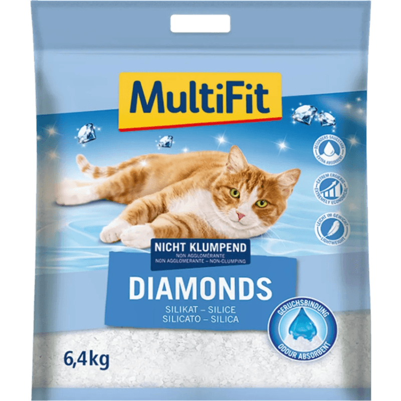 Kit Risparmio 4x15L Multifit Lettiera Cat Assorbente è una lettiera senza polvere, ad alte prestazioni e non agglomerante a base di sabbia di quarzo purissima appositamente raffinata per tutti i gatti grandi e piccoli (a partire da 6 settimane) con elevate esigenze di igiene quotidiana. La lettiera con i diamanti si distingue perché assorbono l'urina alla velocità della luce, intrappolando in modo sicuro i germi batterici e gli odori sgradevoli e rilasciano il liquido per l'evaporazione. La lettiera è stata prodotta con un processo speciale che tiene conto degli elevati requisiti igienici del tuo gatto infatti, grazie all'enorme potenza di aspirazione, la lettiera rimane sensibilmente asciutta. Inoltre, grazie alla sua formulazione inibisce la crescita batterica e funziona in modo assolutamente affidabile anche prima che si sviluppino odori sgradevoli. Per un uso più efficace vi consigliamo di riempire la cassetta con almeno 5 cm di lettiera per gatti. Eliminare i rifiuti solidi e i grumi ogni giorno e sostituire la quantità prelevata. I diamanti MultiFit sono estremamente economici e devono essere sostituiti solo dopo un mese. Con il riscaldamento a pavimento mettere un materiale isolante sotto la lettiera. Questo previene gli odori che potrebbero derivare dal riscaldamento dei liquidi legati nei granuli.