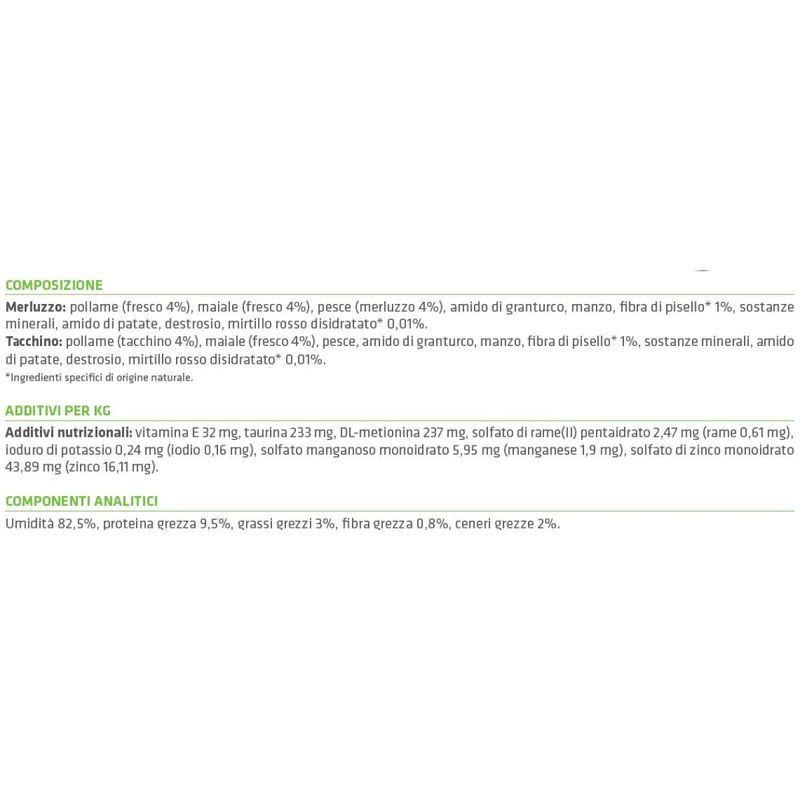 N.B. Il kit risparmio contiene 72 buste da 85G al gusto Merluzzo e Tacchino.