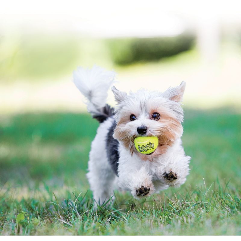 KONG Squeakair Ball è perfetto per i giochi di lancio del tuo cane. Questo divertimento combina la classica pallina da tennis ma con l'aggiunta dello squeak per regalare al tuo Fido un divertimento per ore. Questo gioco è formato da materiale analogo a quello della palla da tennis e anche non abrasivo, in tal modo non risulterà tossico per il tuo cane. Giocare per ore con queste divertente pallina fa bene al tuo Fido: correre rinforzerà le sue articolazioni, mantenendolo in buona salute ma anche rinforzando lo speciale rapporto che vi lega. Grazie allo squeaker, il tuo Fido sarà stimolato ad essere attivo e vigile, prolungando il divertimento per ore. Composto in materiale non abrasivo KONG Air Squeakair Ball è sicuro perché non danneggia i denti e le gengive. Disponibili in diversi formati e in colori assortiti non selezionabili. Confezione da tre pezzi.