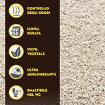 Essendo derivata interamente dalla soia, questa lettiera è completamente vegetale e priva di componenti chimici dannosi, garantendo così un'opzione sostenibile e rispettosa dell'ambiente. Le fibre vegetali presenti nella lettiera agglomerante trattenendo i liquidi del gatto, formano una palla compatta che garantisce un'assorbenza ottimale. Grazie alla sua composizione a base di fibre vegetali, questa sabbia è estremamente assorbente, formando agglomerati compatti che facilitano la rimozione dei rifiuti e controllano efficacemente gli odori, mantenendo la tua casa fresca e priva di cattivi odori. Con una resistenza prolungata, può durare fino a 3-4 settimane con un solo gatto di medie dimensioni, offrendo quindi maggiore convenienza e minori cambi di lettiera.