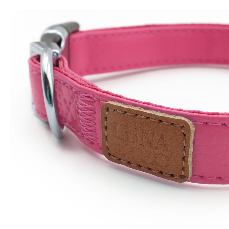 Il collare fashion di Luna&Teo è la soluzione ideale per il tuo cane, utile per la sua sicurezza senza rinunciare alla moda e allo stile. Sfoggia lo sgargiante collare color fucsia e la fibbia in argento da fare invidia ai suoi amici a quattro zampe. Il collare Luna&Teo, marchio esclusivo di Arcaplanet, è disponibile in due misure: S: Girocollo 30-37 cm, Spessore 15mm, Lunghezza 1.2 M; M: Girocollo 35-45 c, Spessore 20mm, Lunghezza 1.2 M.