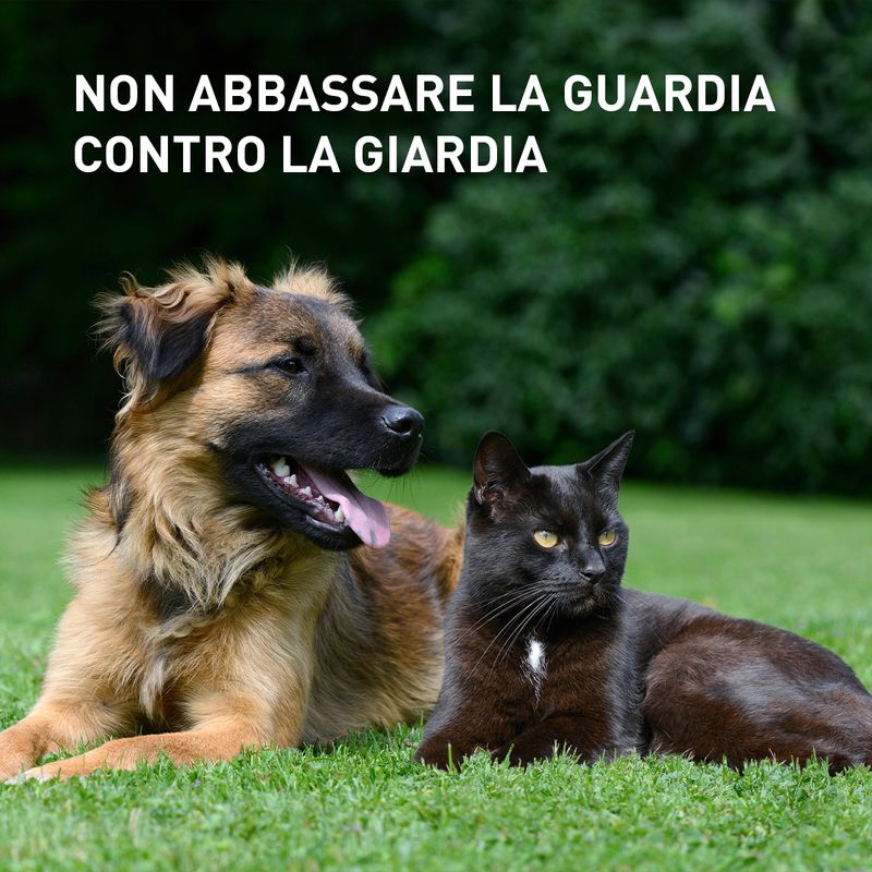 INDICAZIONI: Trattamento di nematodi gastrointestinali e cestodi dei cani e dei gatti. È inoltre indicato per la prevenzione e il controllo delle infestazioni da Giardia nel cane. In particolare è indicato nei cani per la terapia delle infestazioni da: ascaridi (Toxocara canis, Toxascaris leonina), stadi maturi; ancilostomi (Ancylostoma caninum, Uncinaria stenocephala), stadi maturi; tricocefali (Trichuris vulpis), stadi maturi; cestodi (Taenia pisiformis), stadi maturi. Nei gatti per le seguenti infestazioni: ascaridi (Toxocara mystax), stadi maturi; ancilostomi (Ancylostoma tubaeforme), stadi immaturi e maturi; cestodi (Taenia hyd atigena), stadi maturi. Si consiglia di ripetere il trattamento nei confronti di ascaridi e cestodi tenendo in considerazione il ciclo di sviluppo del parassita da larva a stadio maturo.