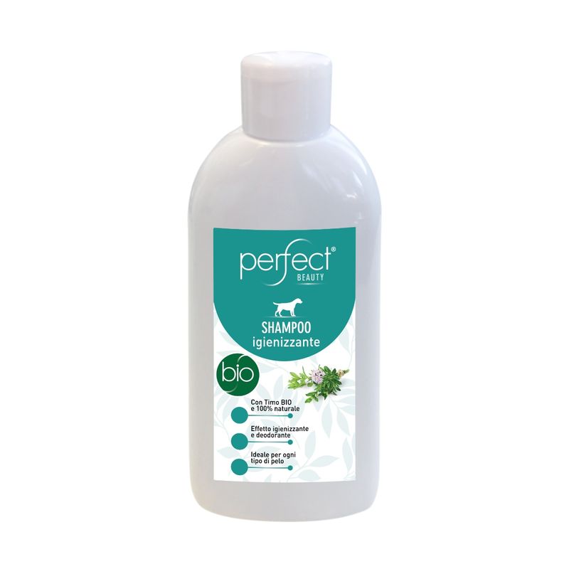 Il Perfect Dog Bio Shampoo Igienizzante è lo shampoo perfetto per una detersione profonda ma delicata del pelo del tuo cane. Appartenente alla categoria secco, è indicato per cani di tutte le taglie e tipi di pelo, grazie alla sua formula naturale che agisce senza irritare la pelle. L’ingrediente chiave è l’estratto biologico di timo, che svolge un’azione igienizzante e deodorante sul manto, lasciandolo pulito, fresco e piacevolmente profumato. Lo shampoo rende il pelo morbido e luminoso, facilitandone la pettinatura e migliorandone l’aspetto già dal primo utilizzo. È un prodotto pensato per l’uso regolare, completamente privo di parabeni, siliconi, solfati e profumi sintetici, per garantire la massima tollerabilità anche nei cani con pelle sensibile.