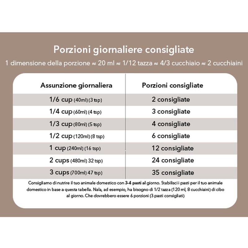 • Fino a 6 pasti al giorno con porzioni personalizzabili.