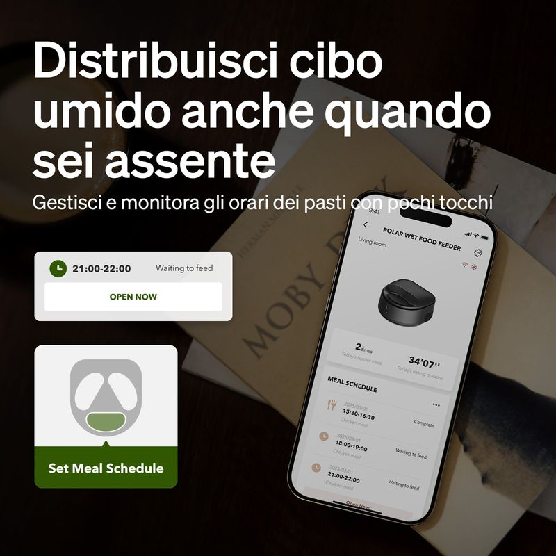 Con il Petlibro Gatto Distributore Cibo Umido Automatico Polar, il cibo umido resta fresco, sicuro e irresistibile… anche quando sei fuori casa!