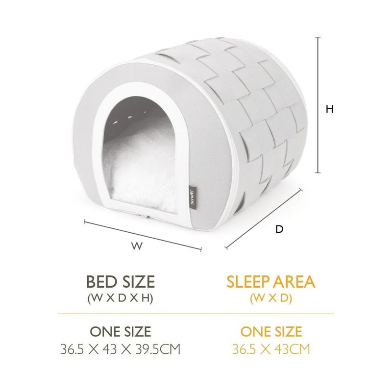 La Scruffs Cuccia Gatto Stockholm Grotta è un vero nido di comfort per il tuo micio. Appartenente alla categoria accessori per gatti, questa cuccia a forma di grotta è ideale per gatti adulti e cuccioli di tutte le taglie che amano rintanarsi in spazi caldi e protetti. Il suo design chiuso riproduce una tana naturale, perfetta per assecondare l’istinto felino di nascondersi, esplorare e rilassarsi in tutta tranquillità. Grazie al cuscino in pelliccia sintetica super morbida, l’interno è estremamente accogliente, mentre le pareti esterne in feltro intrecciato offrono resistenza e isolamento dagli spifferi. Un vero toccasana per il benessere emotivo e la riduzione dello stress del tuo gatto. I materiali usati sono sicuri, pratici da pulire e progettati per durare nel tempo: il rivestimento si pulisce con un semplice panno e l’imbottitura è lavabile in lavatrice.