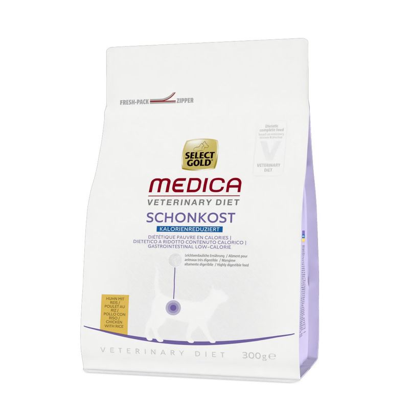 300GSelect Gold Medica Cat Gastrointestinal Low Calorie Pollo è un alimento completamente dietetico di eccellente qualità, sviluppato in collaborazione con veterinari ed è l'opzione ideale per i gatti adulti con problemi gastrointestinali.