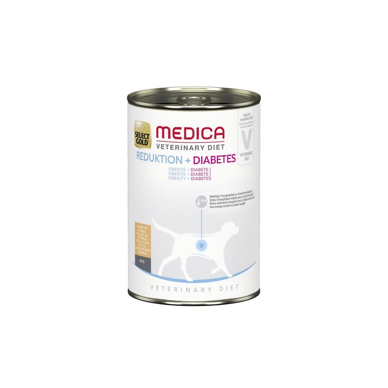 Il tuo amico fedele è affetto da diabete mellito e non sai come risolvere il suo problema? Allora Select Gold Medica ha la soluzione perfetta per te con l'alimento umido Dog Obesity+Diabetic, ideale per la regolazione dell'apporto di glucosio e la riduzione dell'eccesso di peso corporeo.