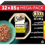 Con Sheba Selezione Delicata Cat Vaschetta Multipack 32x85G, offri al tuo amico peloso un'esperienza culinaria di lusso, ricca di sapori deliziosi e ingredienti di prima qualità. Non c'è niente di meglio per dimostrare il tuo amore al tuo gatto che viziandolo con Sheba, un marchio dedicato a offrire il meglio in termini di cibo umido per gatti.