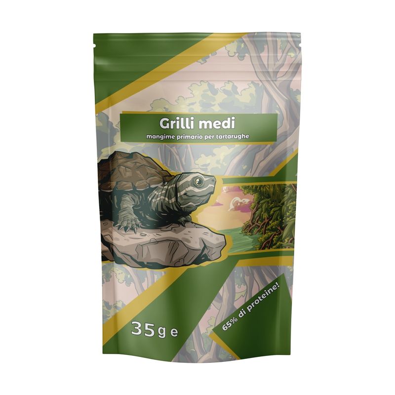Tailybite Grilli Medi Mangime Primario per Tartarughe sono un alimento secco, perfetto per tartarughe insettivore di terra e d’acqua, e adatto anche ad altri piccoli animali. Ricchi di proteine di alta qualità (65%), grassi insaturi, calcio biodisponibile, vitamina B12 e aminoacidi essenziali, questi grilli essiccati rappresentano una fonte completa per supportare crescita, metabolismo, vitalità e salute del carapace. Essiccati a bassa temperatura, mantengono il loro profilo nutrizionale e risultano altamente digeribili e appetibili. Possono essere somministrati tal quali o integrati con altri mangimi per arricchire la dieta e stimolare il comportamento naturale di caccia. Totalmente senza additivi o conservanti, sono pratici da conservare e pronti all’uso, ideali per chi cerca un’alimentazione più naturale e varia per la propria tartaruga.