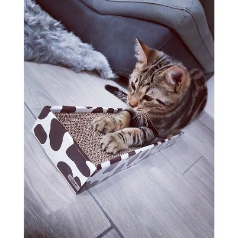 I tiragraffi per gatti Home Decor seguono le tendenze nel campo dell’arredamento garantendo diverse possibilità di stile per ogni gusto. Il tiragraffi per gatto in cartone Home Decor Leaves è semplice ma funzionale, dotato di piedini antiscivolo e può essere utilizzato su entrambi i lati, durando di più nel tempo. Con Home Decor Leaves il tuo gatto potrà giocare, rifarsi le unghie e grazie al potere isolante del cartone sarà apprezzato anche per dormire. Una busta di catnip profumato in dotazione, che attira l'attenzione del felino per usare il tiragraffi. Dimensioni: 48 x 12,5 x 5 cm.