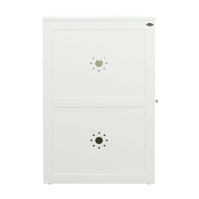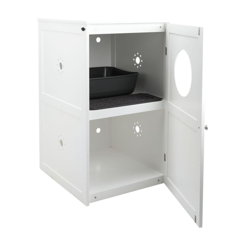 La Trixie Casetta Per Gatto a due Piani rappresenta una soluzione d’arredo raffinata e funzionale, pensata per chi desidera mantenere la zona lettiera sempre in ordine e visivamente gradevole. Realizzata in MDF verniciato, si integra con discrezione in qualsiasi ambiente grazie al suo design moderno e minimalista. Ideale per gatti di tutte le età, offre uno spazio riservato per la lettiera nella parte superiore e un vano inferiore utile come zona riposo o per riporre accessori. Il foro d’ingresso regolabile può essere montato in alto o in basso, a destra o a sinistra, adattandosi facilmente alle esigenze di casa. Il tappetino incluso trattiene i residui di lettiera dalle zampe del gatto, contribuendo a mantenere i pavimenti puliti. L’interno è ben ventilato e facile da pulire grazie alla porta con chiusura magnetica, mentre i materiali impiegati sono sicuri e senza sostanze nocive, per il massimo comfort e igiene del tuo amico felino.