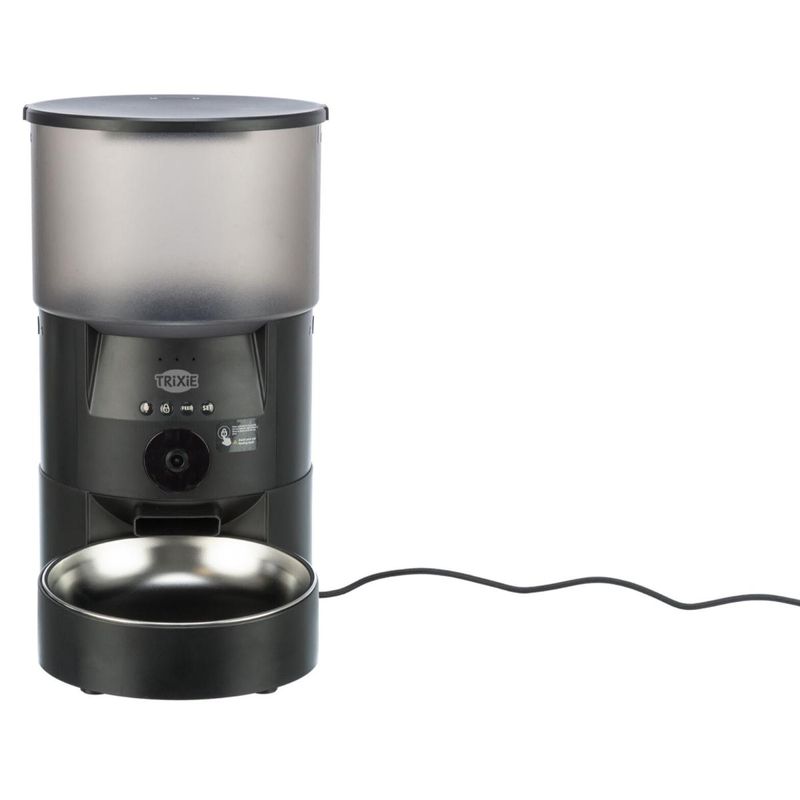 Assicura pasti puntuali e personalizzati al tuo pet con il Trixie Distributore Automatico per Cibo Nero 3LT con Controllo tramite App… comodità smart per una routine sempre sotto controllo!