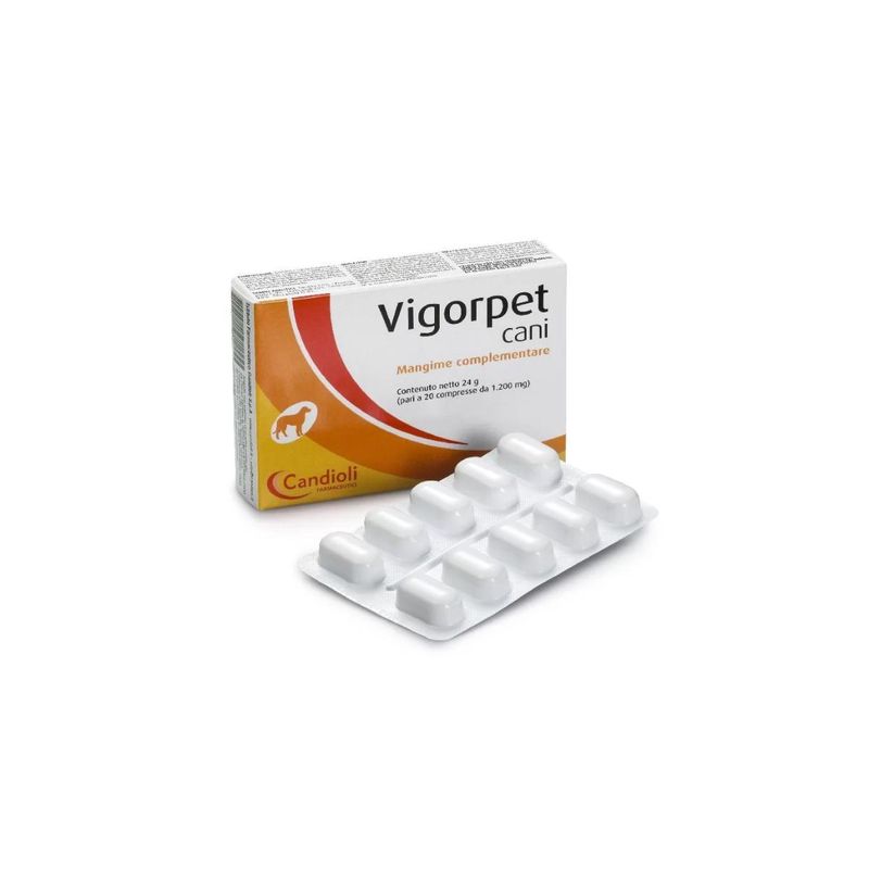 20CPVigorpet Mangime Complementare per Cani è un mangime complementare appositamente formulato per cani, pensato per supportare il benessere generale nei casi di affaticamento o quando sia necessario migliorare il tono fisico e metabolico. Arricchito con vitamine e nutrienti, fornisce un apporto adeguato di aminoacidi ramificati e vitamine essenziali, ideale per integrare la normale alimentazione del cane, per migliorare il tono generale e sostenere il recupero energetico. Indicato per cani che hanno bisogno di compensare fabbisogni energetici o metabolici, favorendo un rapido recupero del benessere. Può essere usato per stimolare il tono generale e la vitalità, soprattutto in animali con necessità di maggiore apporto nutrizionale.