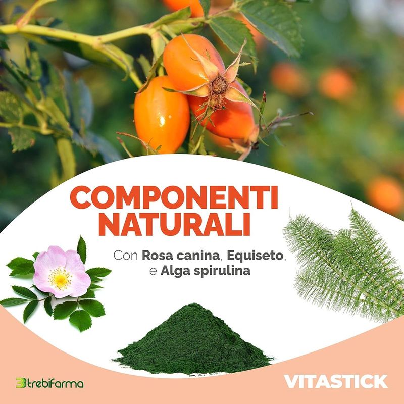 15GVitastick Mangime Complementare è un mangime complementare appositamente formulato per supportare il fisiologico metabolismo energetico nei cani e gatti, particolarmente indicato nei casi di deperimento organico. Questo prodotto è utile in situazioni di malassorbimento, parassitosi, patologie croniche debilitanti, convalescenze post-operatorie, gravidanza, allattamento, crescita, consolidamento di fratture e durante fasi di intensa attività fisica. Grazie agli estratti fitoterapici presenti, Vitastick offre un valido supporto durante la convalescenza e in situazioni di debilitazione. Tra i suoi ingredienti principali troviamo alga spirulina, taurina e l-carnitina, che forniscono l'energia e lo sprint necessari per il recupero. L'equiseto (Equisetum arvense), pianta nota per la sua azione diuretica e cicatrizzante, è altamente rimineralizzante grazie all'alto contenuto di sali minerali e presenta anche proprietà antinfiammatorie e antiossidanti. La rosa canina, con un contenuto di vitamina C estremamente elevato, stimola il sistema immunitario e ha proprietà vitaminizzanti, facilitando l'assorbimento di calcio e ferro. Inoltre, agisce come antiossidante e antinfiammatorio, contrastando stanchezza e stress, e offre un blando effetto diuretico.