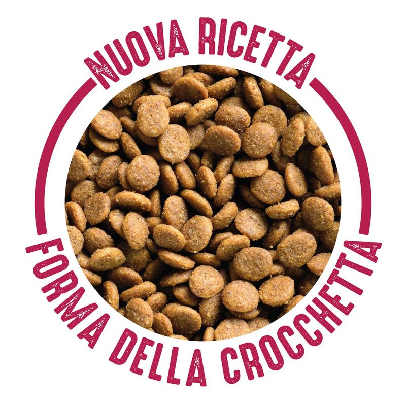 Nuova formula migliorata e nuova dimensione della crocchetta. Per il primo utilizzo si consiglia di mescolare le crocchette con quelle utilizzate in precedenza, al fine di facilitare la transizione.